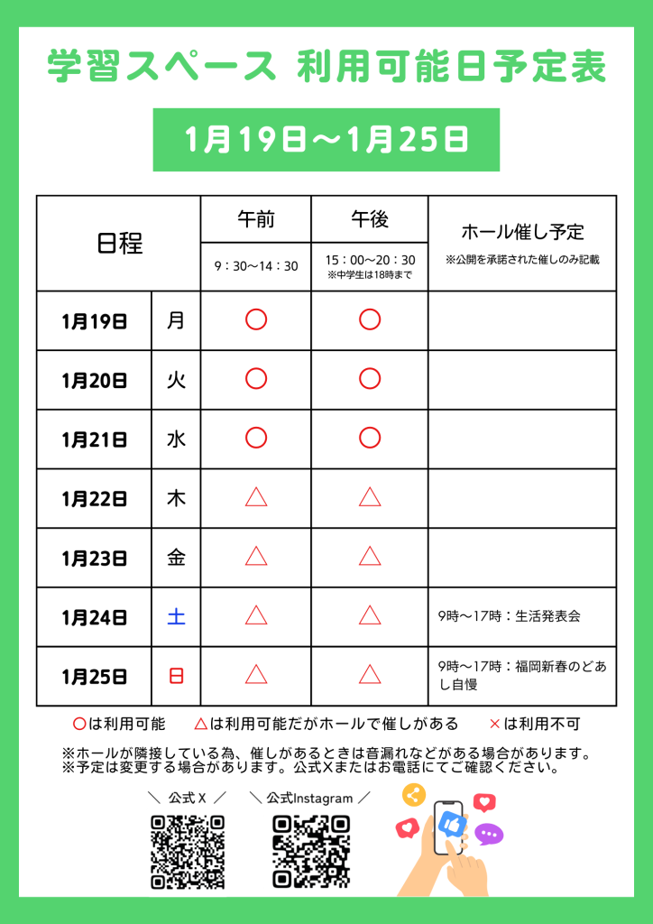 公式X(旧Twitter)にて、学習スペースの利用状況を毎日更新中!