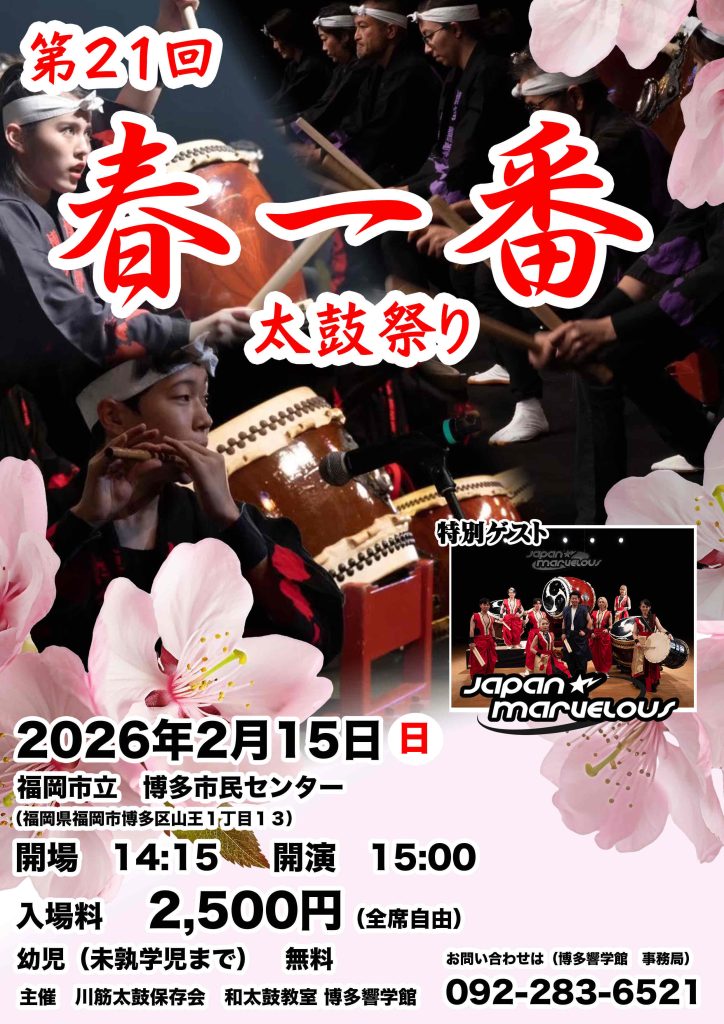 | 主催 | 川筋太鼓保存会 和太鼓教室博多響学館 |